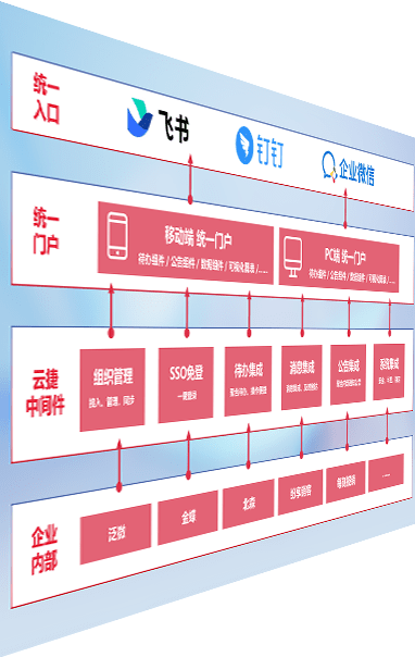 对协作平台提供支持服务,,支持企业应用与协作平台对接,,,包含组织同步、、、、消息集成、、、、待办集成等。。。支持目前主流的协作平台:钉钉、、企微和飞书。。。。